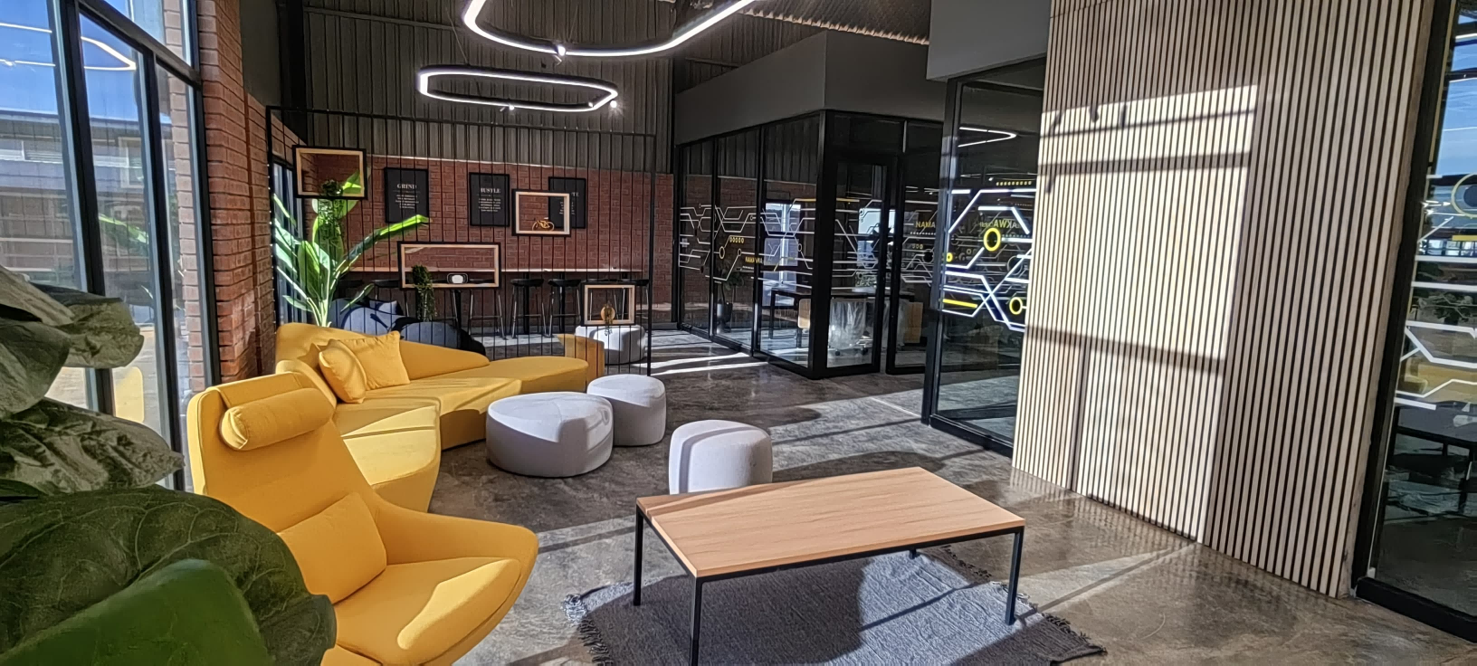 This project involved creating the N Digital Hub, a modern co-working space and digital incubation center designed to support small and medium enterprises in the Namaqualand region of South Africa's Northern Cape province. As the region's first customized digital business development facility, the project aimed to provide local entrepreneurs with a 21st-century innovation environment.